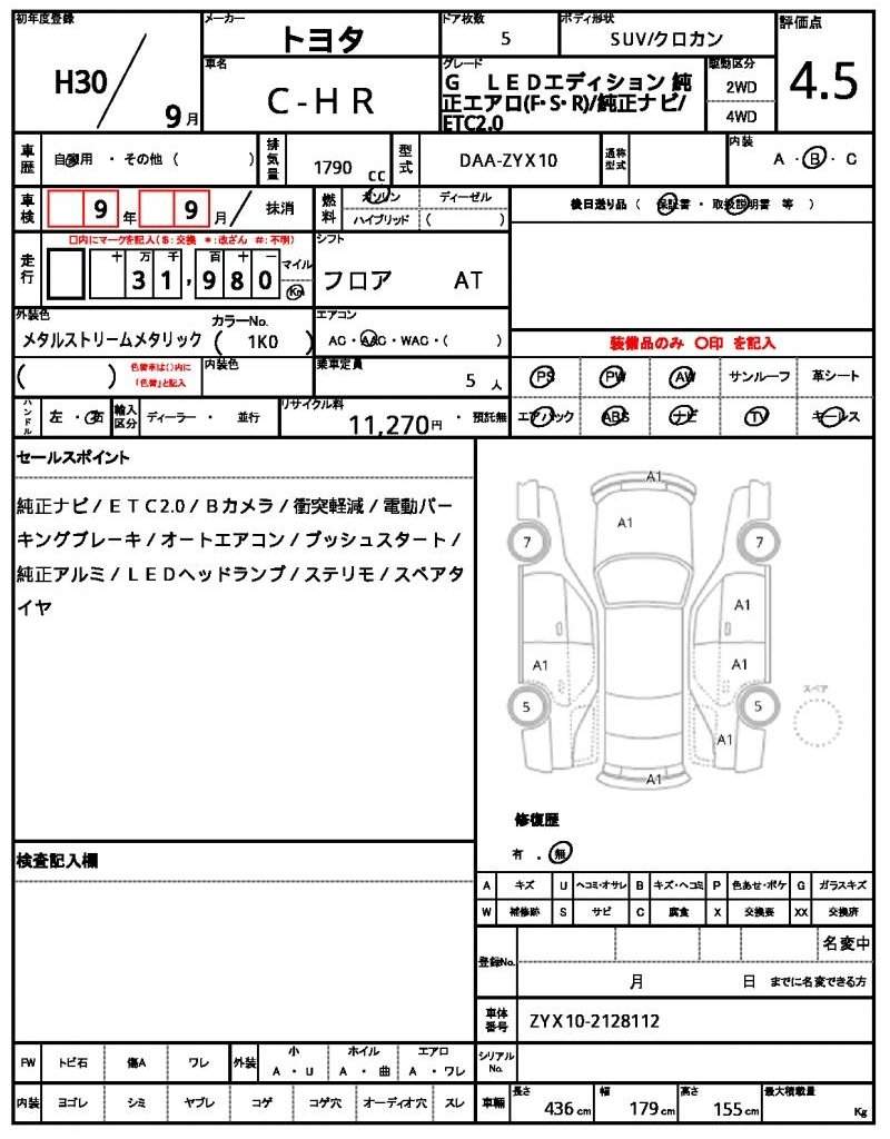 | TOYOTA | C-HR | 2018 | 1790 cc | ||||||||||||||||