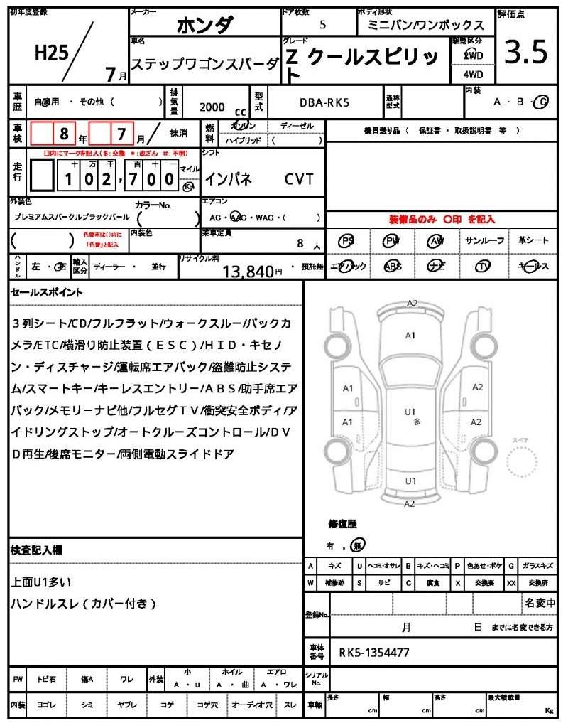 | HONDA | STEPWAGON SPADA | 2013 | 2000 cc | ||||||||||||||||