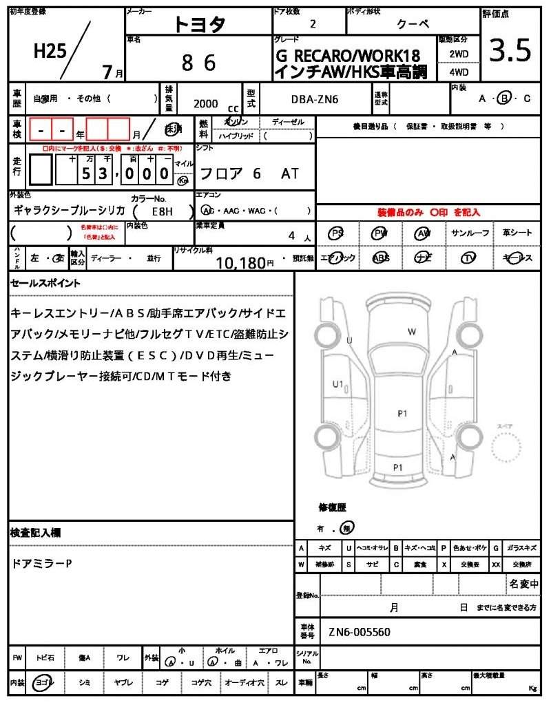 | TOYOTA | 86 | 2013 | 2000 cc | ||||||||||||||||