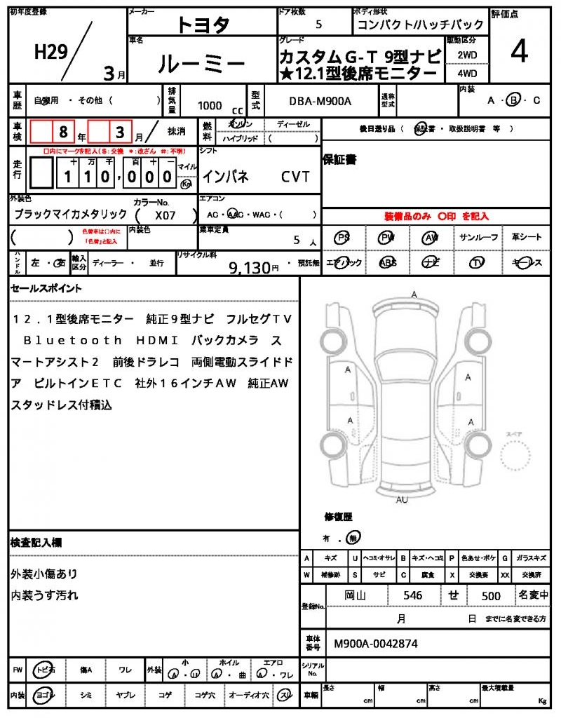 | TOYOTA | ROOMY | 2017 | 1000 cc | ||||||||||||||||
