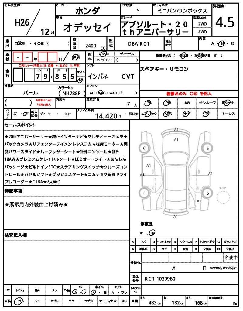 | HONDA | ODYSSEY | 2014 | 2400 cc | ||||||||||||||||
