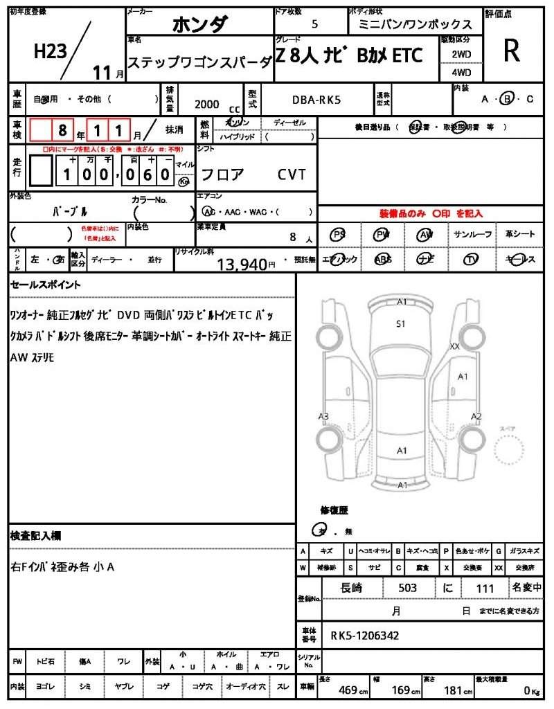| HONDA | STEPWAGON SPADA | 2011 | 2000 cc | ||||||||||||||||
