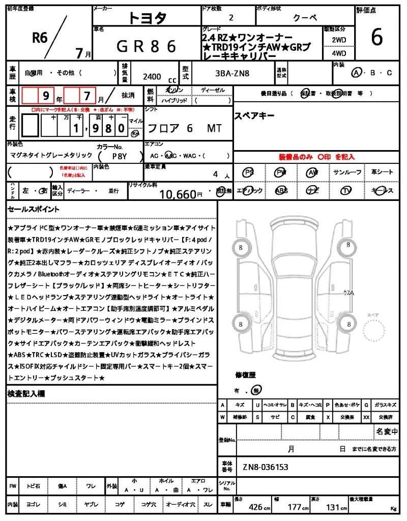 | TOYOTA | GR86 | 2024 | 2400 cc | ||||||||||||||||