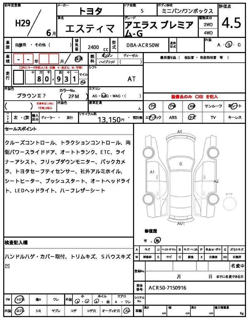 | TOYOTA | ESTIMA | 2017 | 2400 cc | ||||||||||||||||