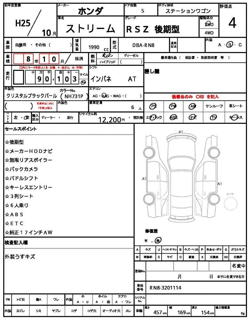 | HONDA | STREAM | 2013 | 1990 cc | ||||||||||||||||