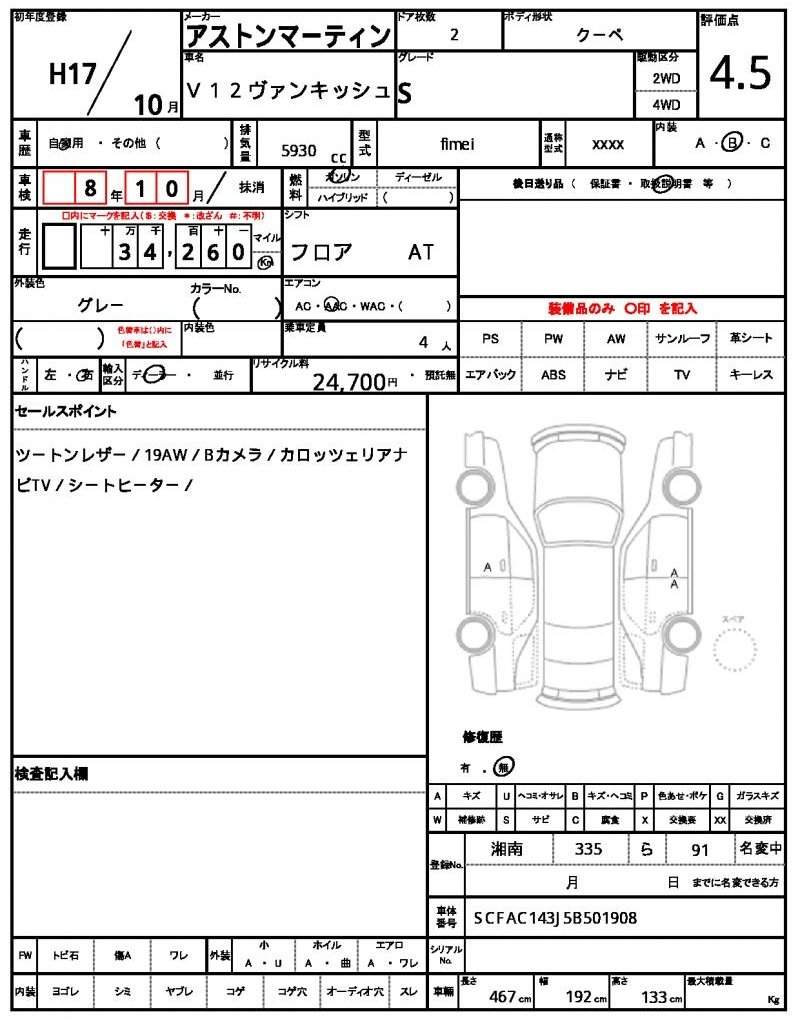 ASTON MARTINV12 VANQUISH20055930 cc