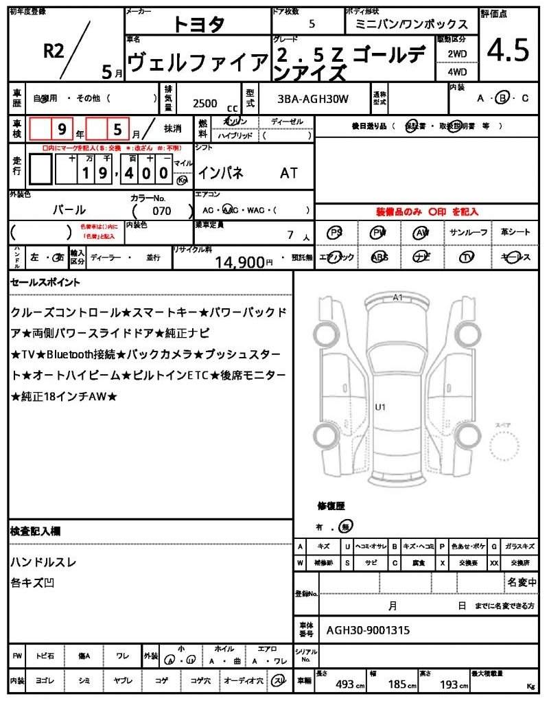 | TOYOTA | VELLFIRE | 2020 | 2500 cc | ||||||||||||||||
