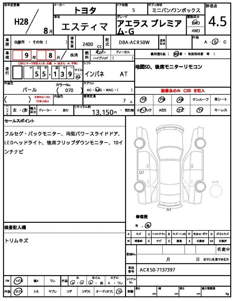 | TOYOTA | ESTIMA | 2016 | 2400 cc | ||||||||||||||||