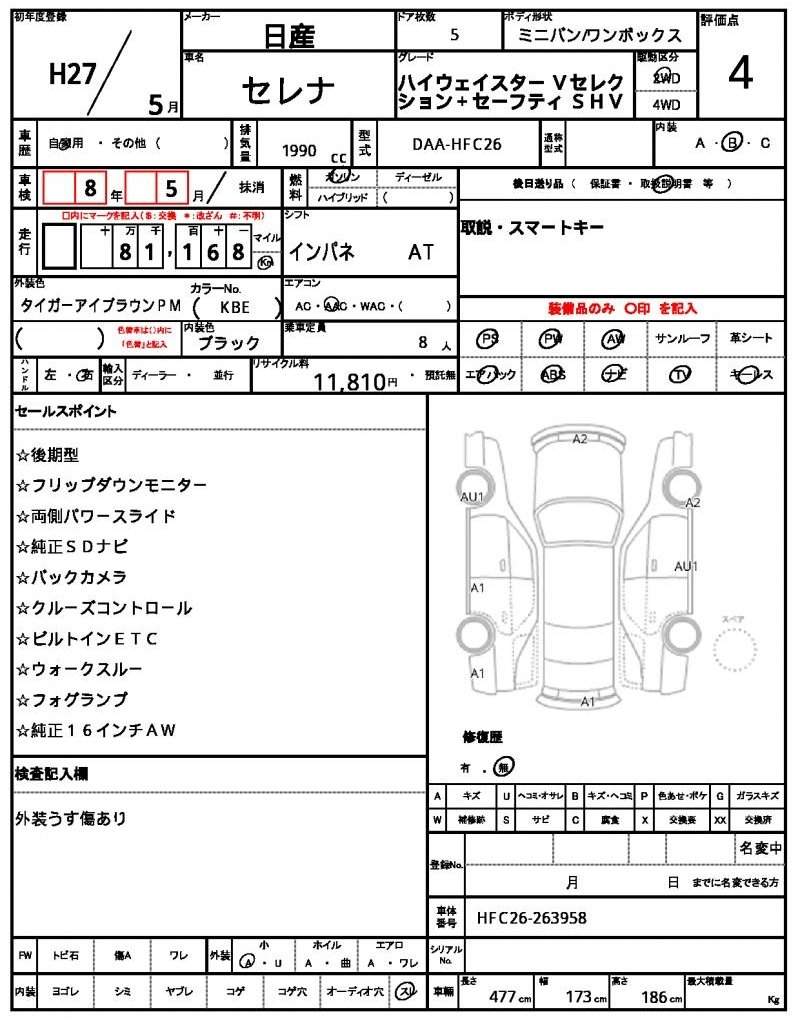 | NISSAN | SERENA | 2015 | 1990 cc | ||||||||||||||||