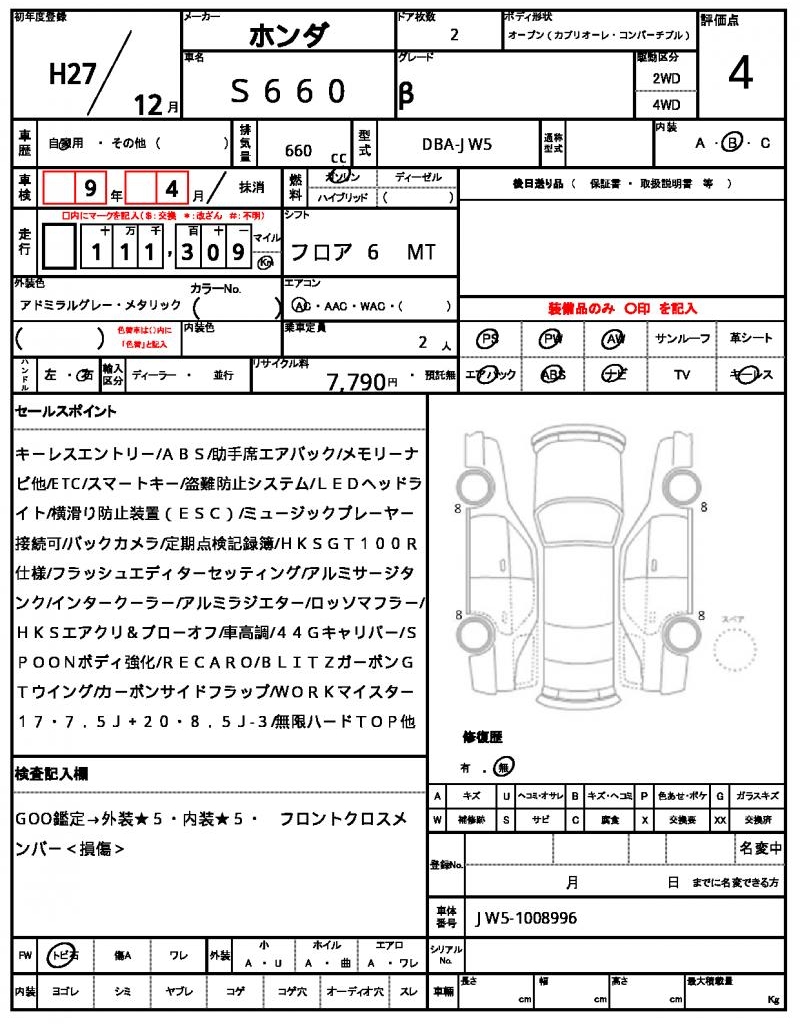 | HONDA | S660 | 2015 | 660 cc | ||||||||||||||||