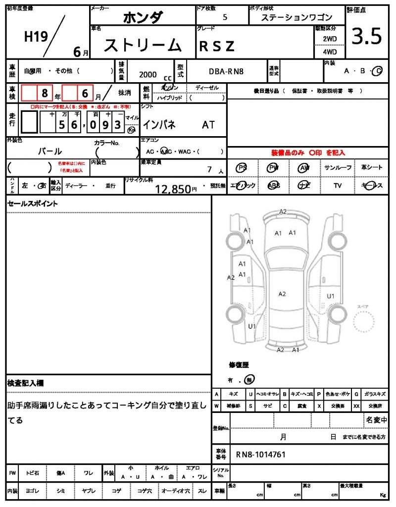 | HONDA | STREAM | 2007 | 2000 cc | ||||||||||||||||