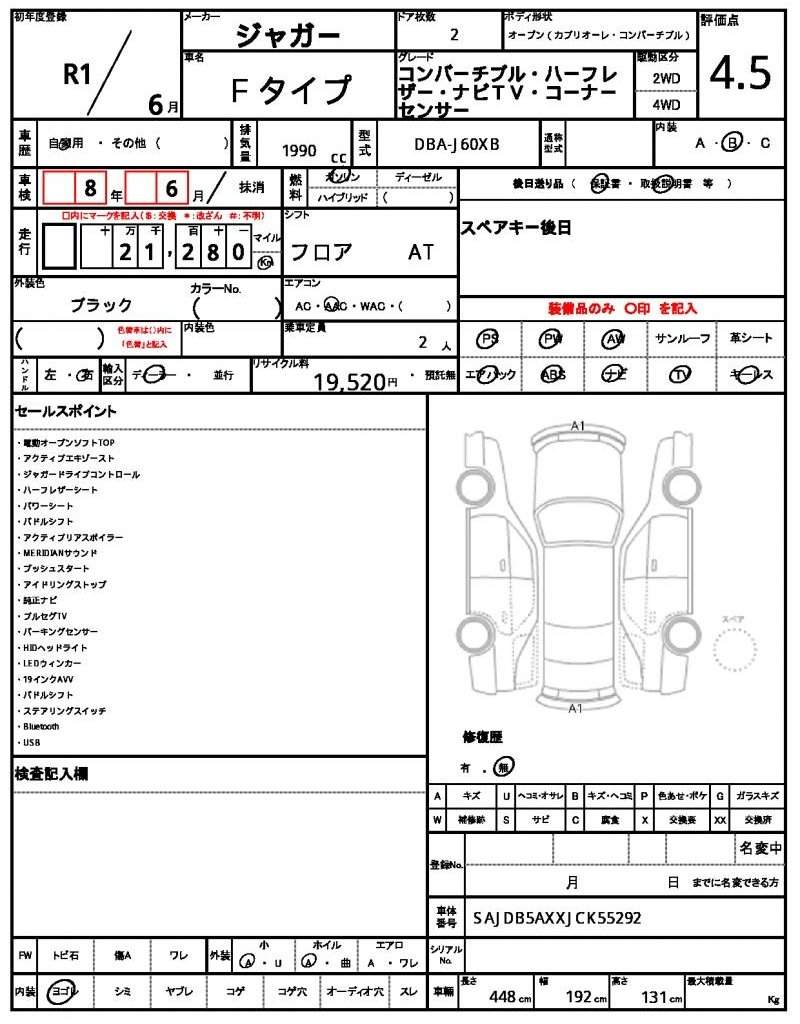 | JAGUAR | F-TYPE | 2019 | 1990 cc | ||||||||||||||||