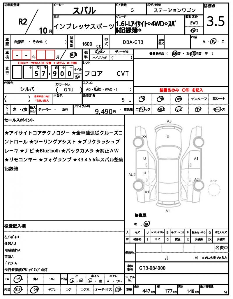 | SUBARU | IMPREZA SPORTS | 2020 | 1600 cc | ||||||||||||||||