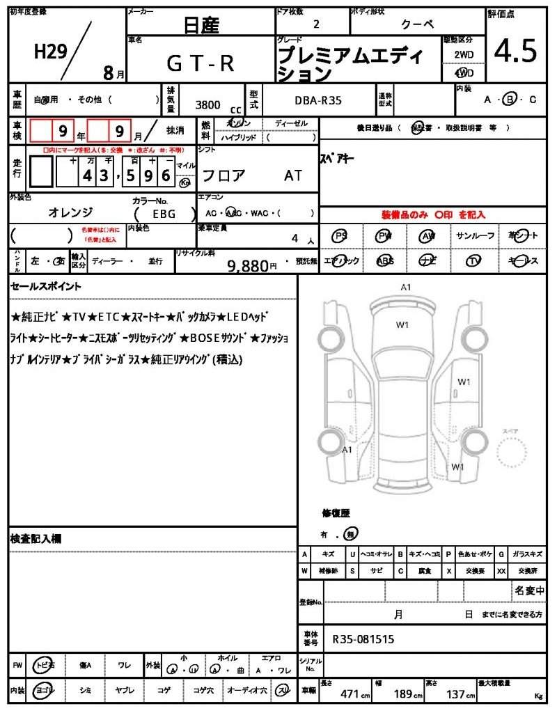 | NISSAN | GT-R | 2017 | 3800 cc | ||||||||||||||||
