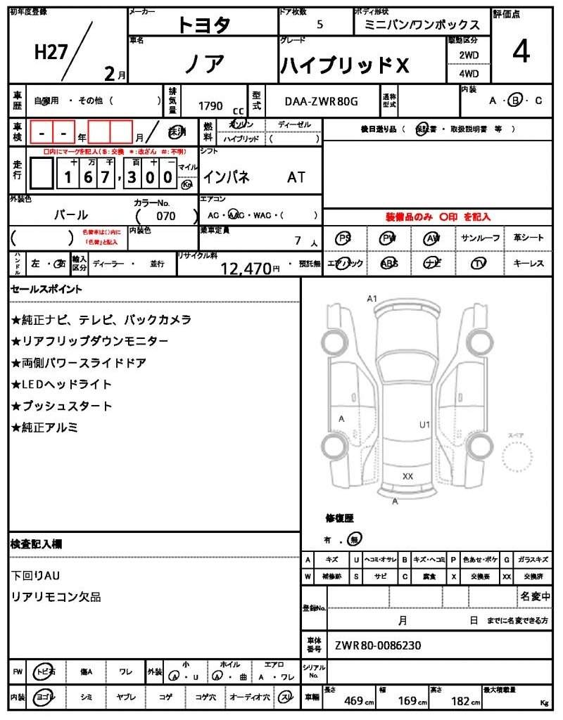 | TOYOTA | NOAH | 2015 | 1790 cc | ||||||||||||||||
