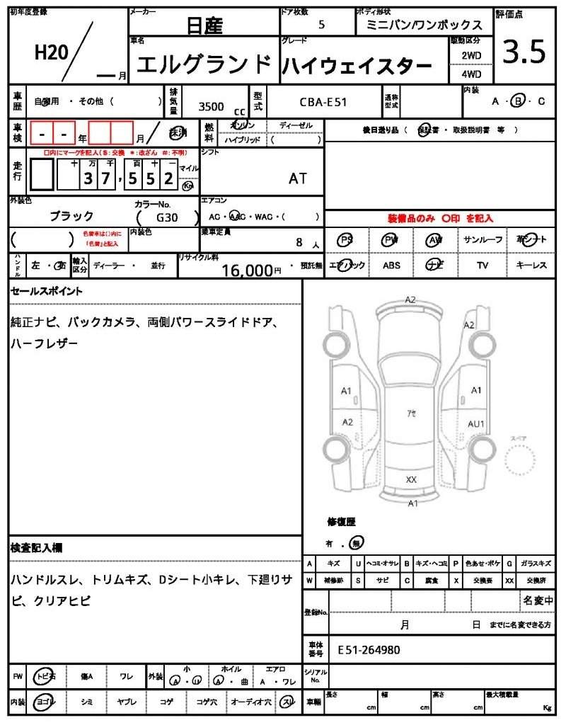 | NISSAN | ELGRAND | 2008 | 3500 cc | ||||||||||||||||