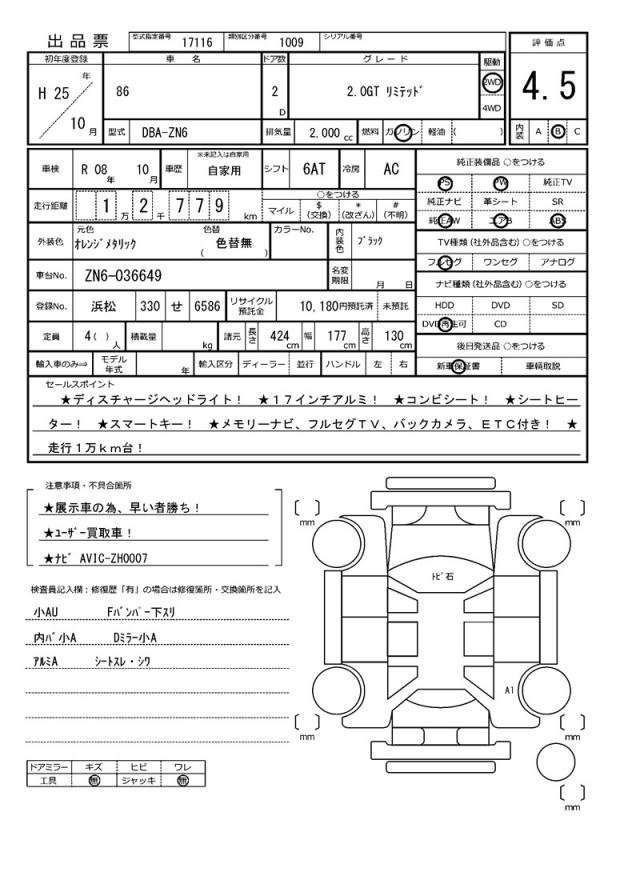 | TOYOTA | 86 | 2013 | 2000 cc | ||||||||||||||||