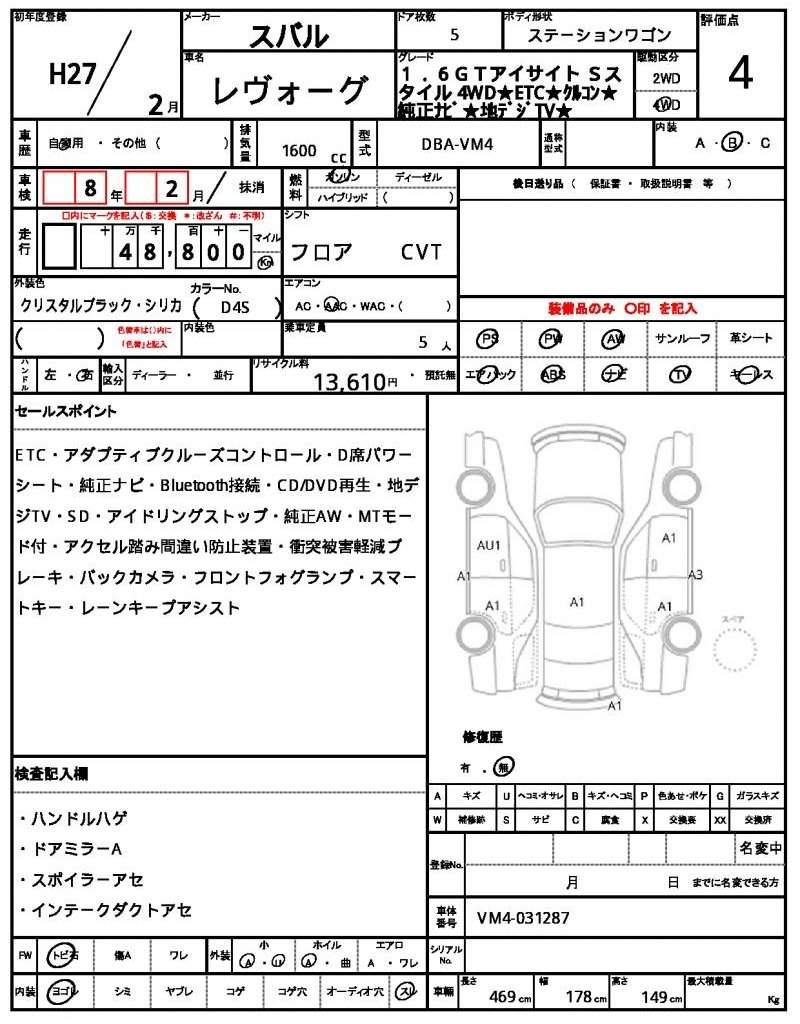 | SUBARU | LEVORG | 2015 | 1600 cc | ||||||||||||||||