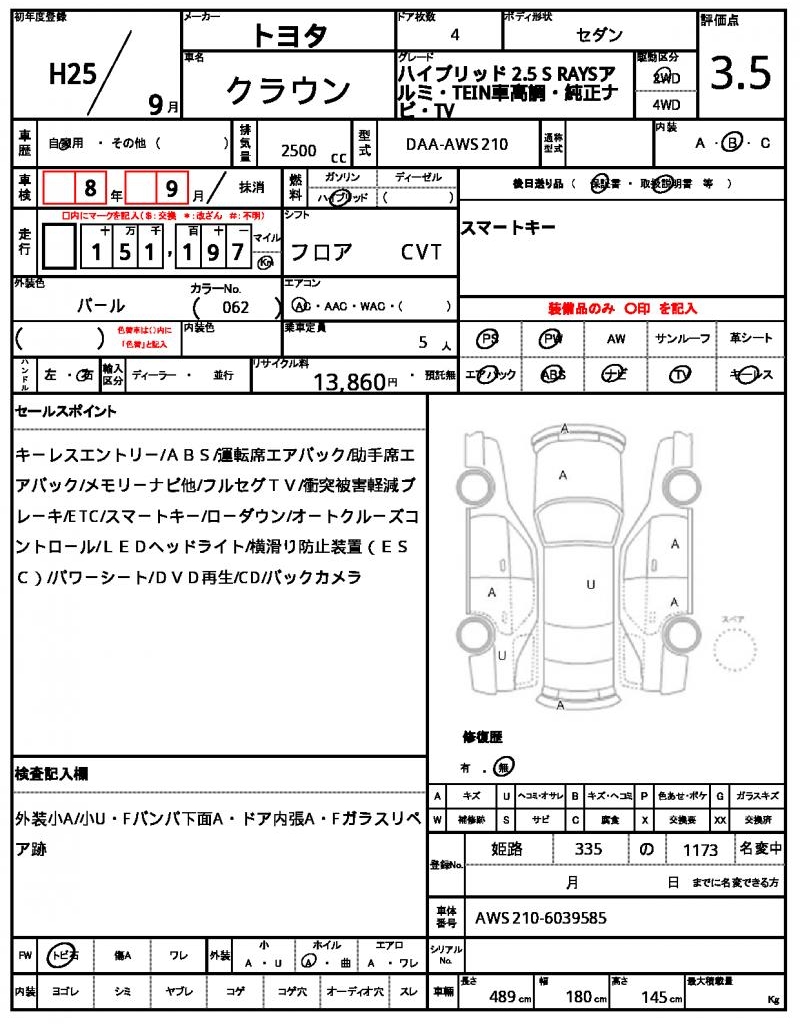 | TOYOTA | CROWN | 2013 | 2500 cc | ||||||||||||||||