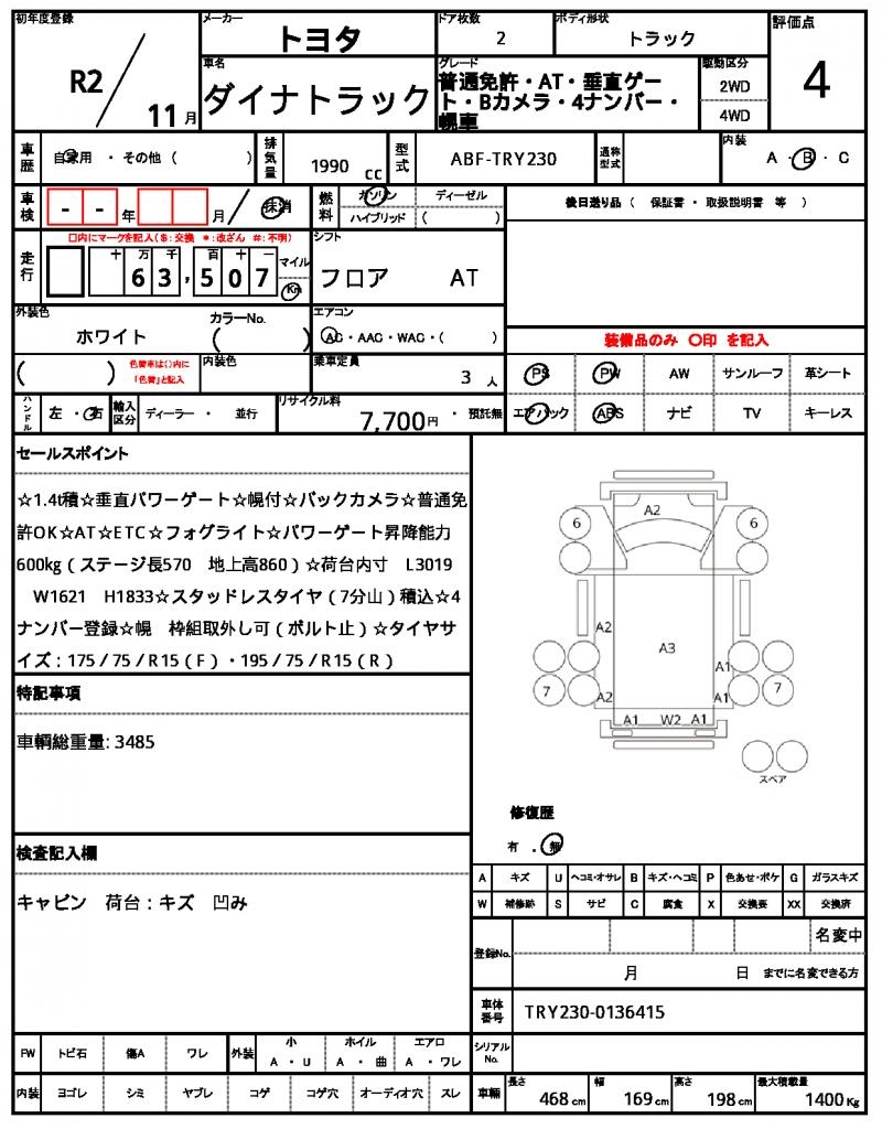 | TOYOTA | DYNA TRUCK | 2020 | 1990 cc | ||||||||||||||||