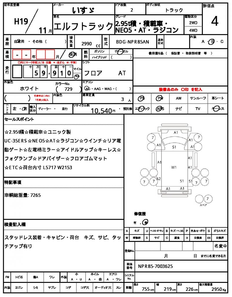 | ISUZU | ELF TRUCK | 2007 | 2990 cc | ||||||||||||||||
