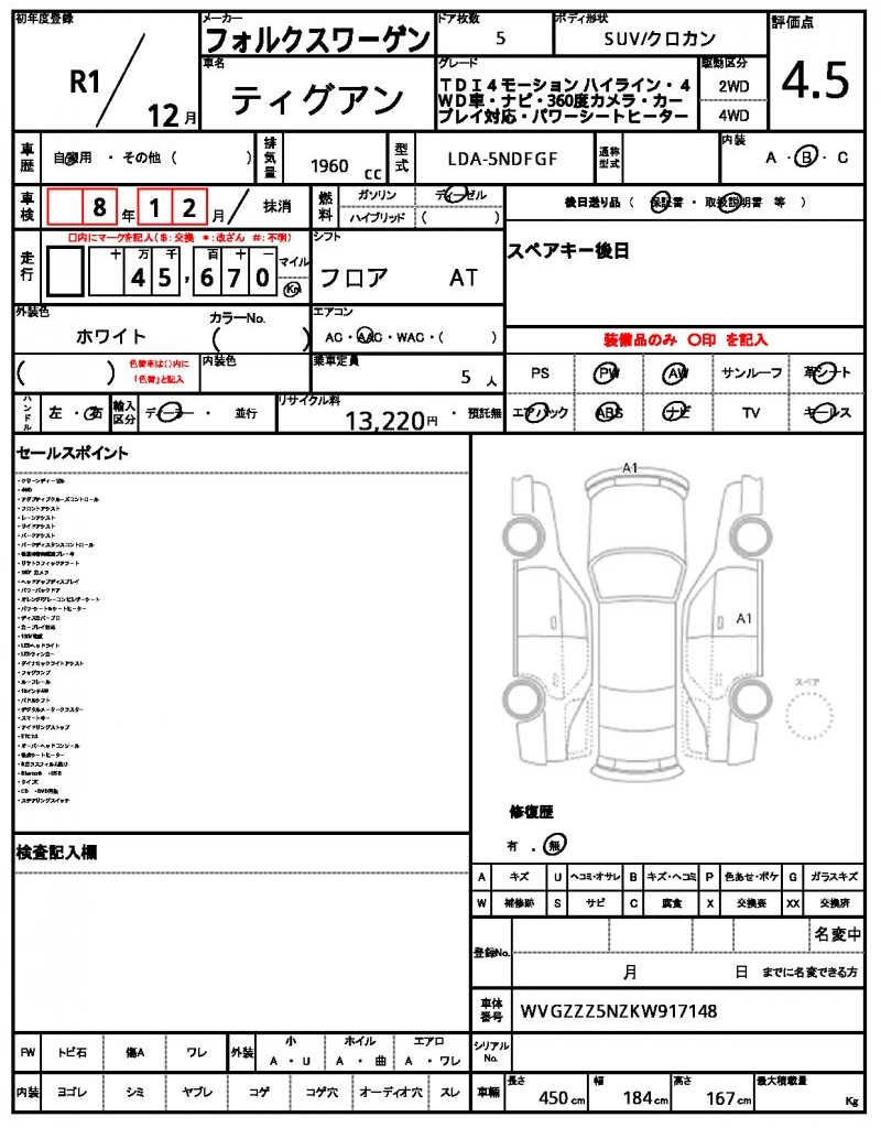 | VOLKSWAGEN | TIGUAN | 2019 | 1960 cc | ||||||||||||||||
