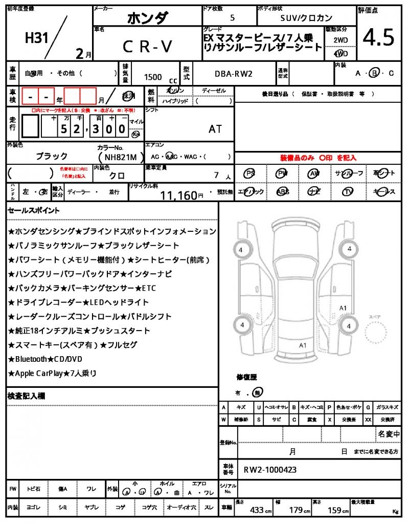 | HONDA | CR-V | 2019 | 1500 cc | ||||||||||||||||
