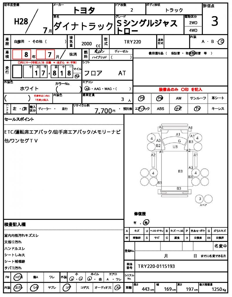 | TOYOTA | DYNA TRUCK | 2016 | 2000 cc | ||||||||||||||||
