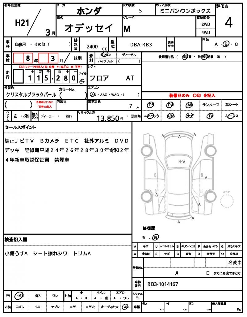 | HONDA | ODYSSEY | 2009 | 2400 cc | ||||||||||||||||