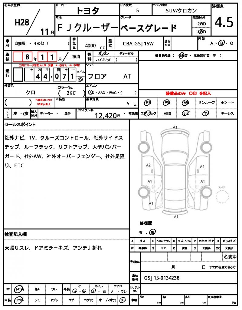 | TOYOTA | FJ CRUISER | 2016 | 4000 cc | ||||||||||||||||