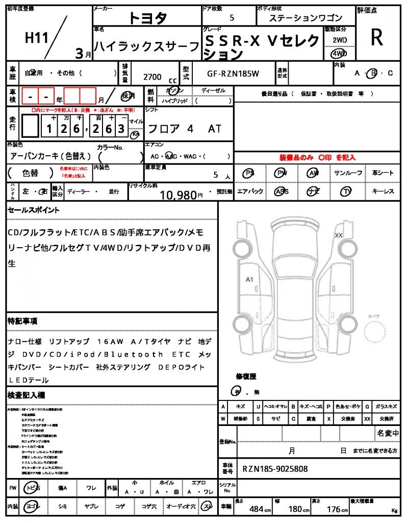 | TOYOTA | HILUX SURF | 1999 | 2700 cc | ||||||||||||||||