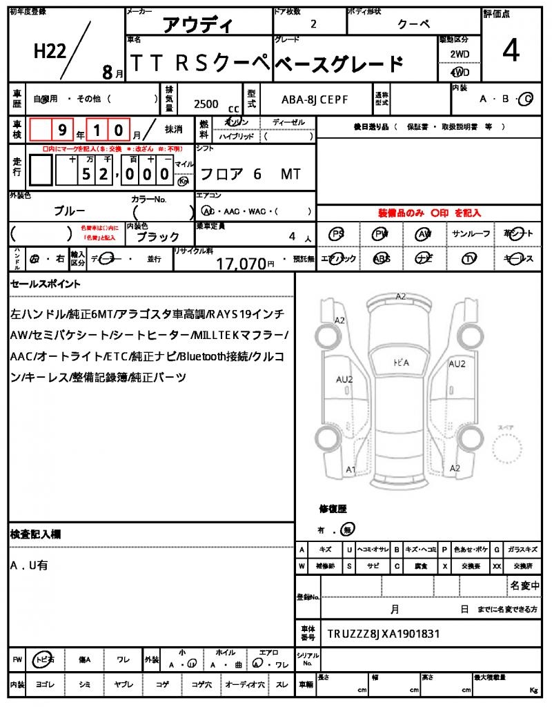 | AUDI | TT RS COUPE | 2010 | 2500 cc | ||||||||||||||||