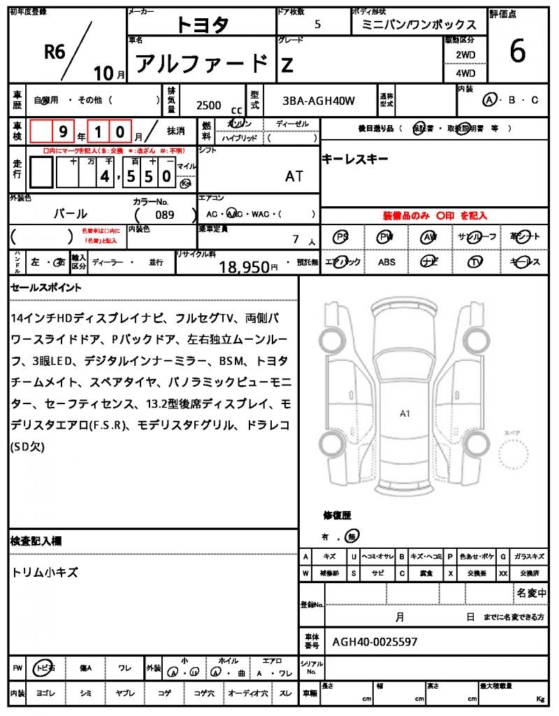 Ref:AUX-20769568 TOYOTA VELLFIRE 2010