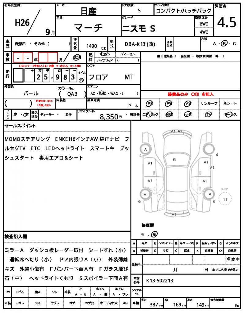 | NISSAN | MARCH | 2014 | 1490 cc | ||||||||||||||||