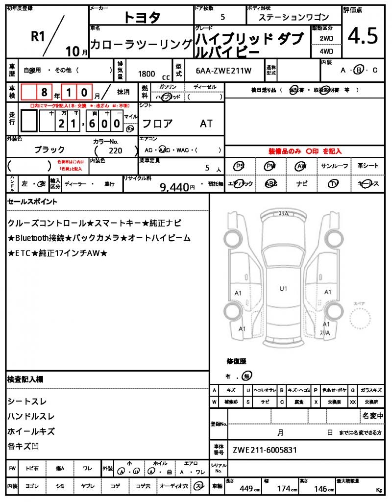 | TOYOTA | COROLLA TOURING | 2019 | 1800 cc | ||||||||||||||||