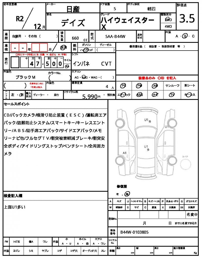 | NISSAN | DAYZ | 2020 | 660 cc | ||||||||||||||||