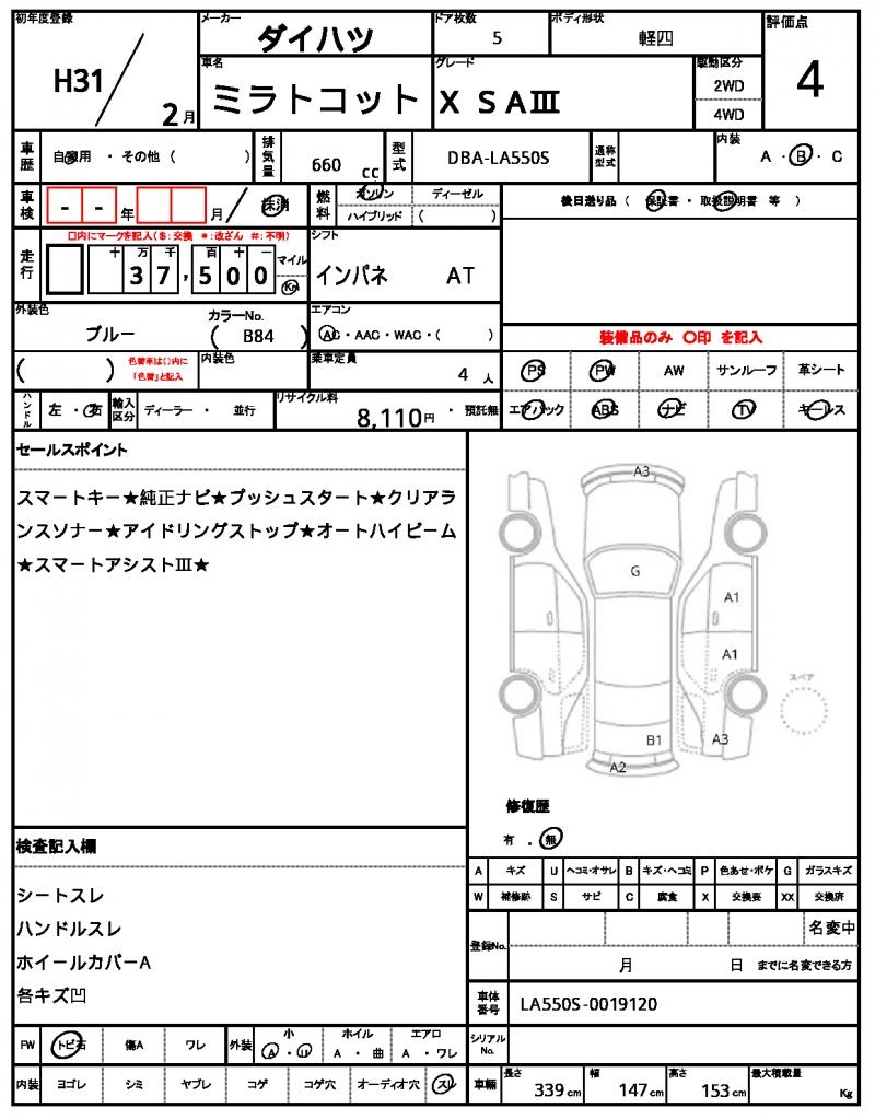 | DAIHATSU | MIRA TOCOT | 2019 | 660 cc | ||||||||||||||||