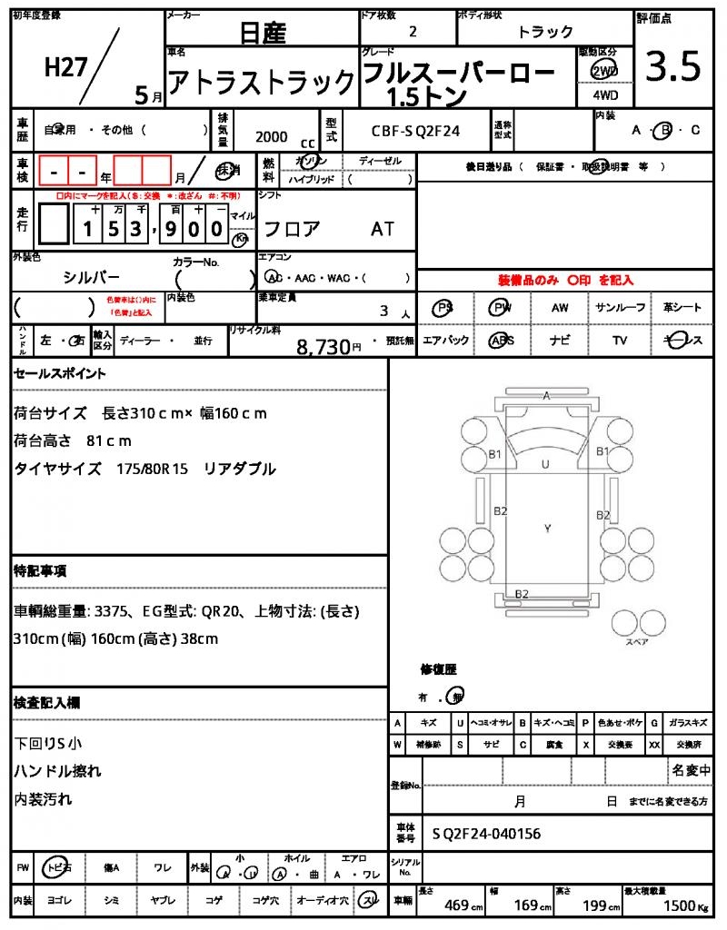 | NISSAN | ATLAS TRUCK | 2015 | 2000 cc | ||||||||||||||||