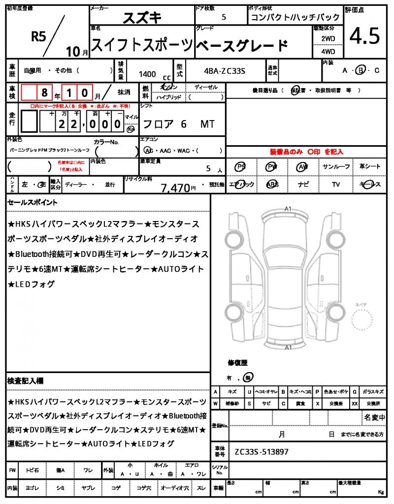 | SUZUKI | SWIFT SPORT | 2023 | 1400 cc | ||||||||||||||||