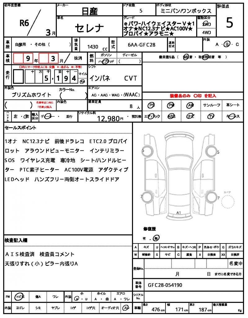 | NISSAN | SERENA | 2024 | 1430 cc | ||||||||||||||||