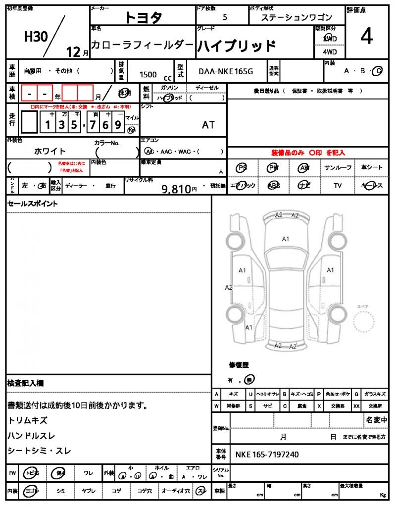| TOYOTA | COROLLA FIELDER | 2018 | 1500 cc | ||||||||||||||||
