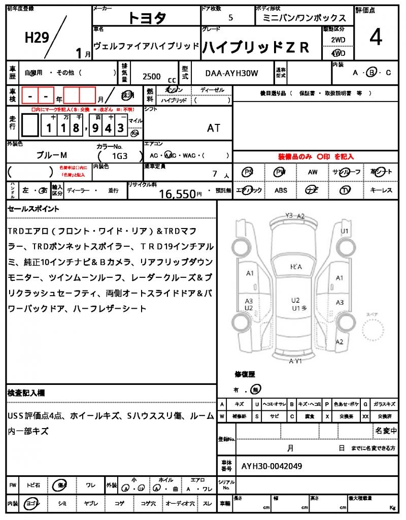 Ref:AUX-16163361 TOYOTA ALPHARD 2014