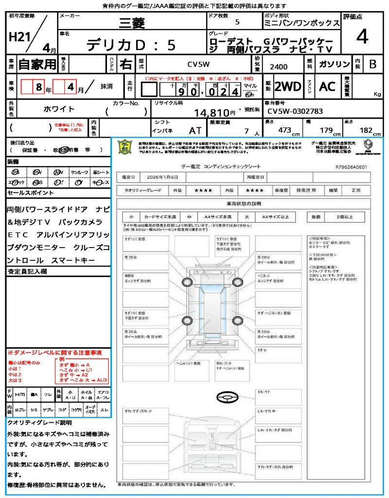| MITSUBISHI | DELICA D:5 | 2009 | 2400 cc | ||||||||||||||||