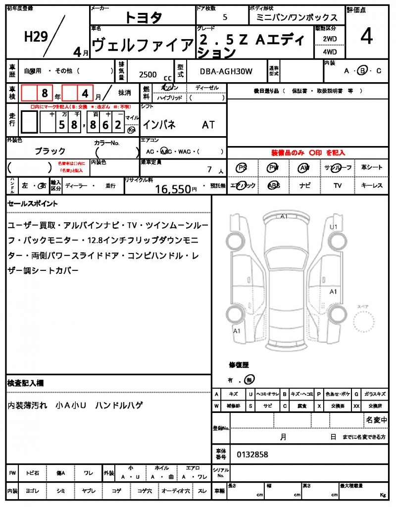 Ref:AUX-20715370 TOYOTA VELLFIRE 2009