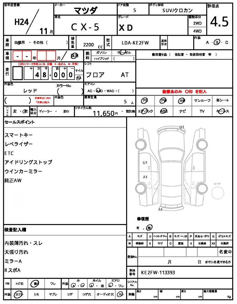| MAZDA | CX-5 | 2012 | 2200 cc | ||||||||||||||||