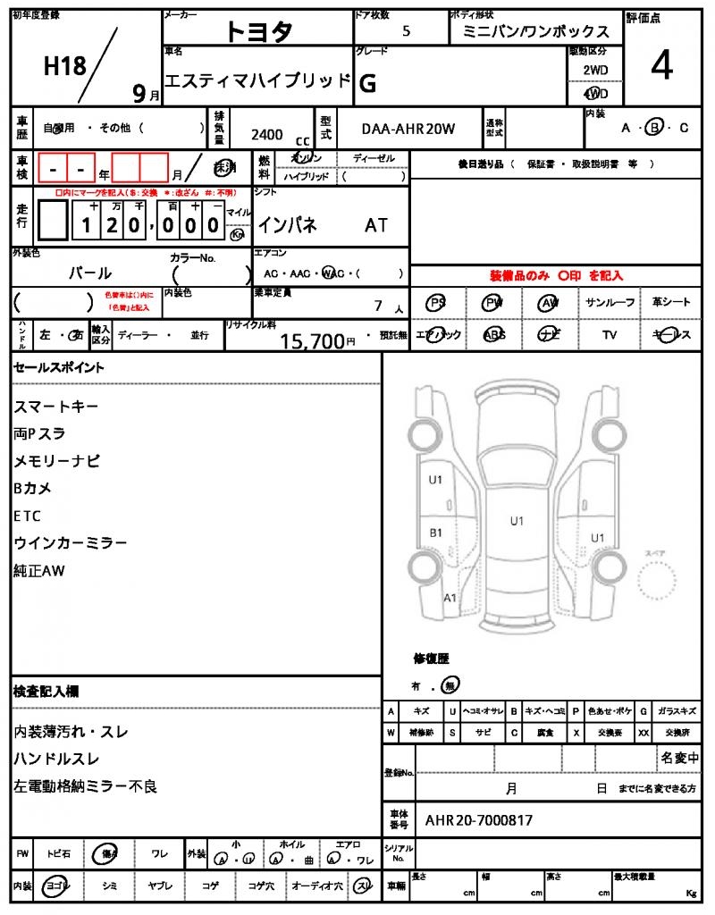 TOYOTAESTIMA HYBRID20062400 cc