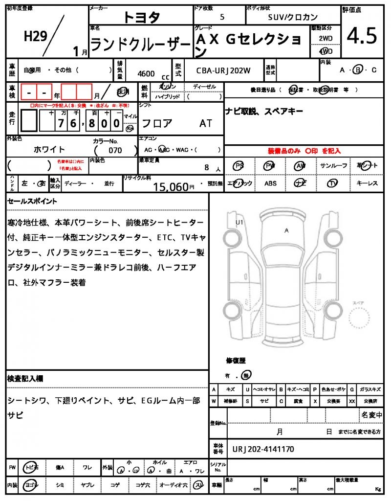 | TOYOTA | LAND CRUISER | 2017 | 4600 cc | ||||||||||||||||