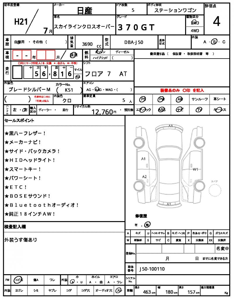 NISSANSKYLINE CROSSOVER20093690 cc
