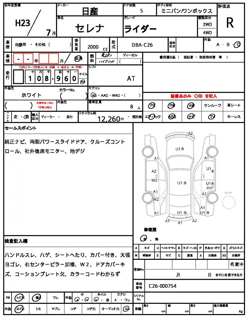 | NISSAN | SERENA | 2011 | 2000 cc | ||||||||||||||||