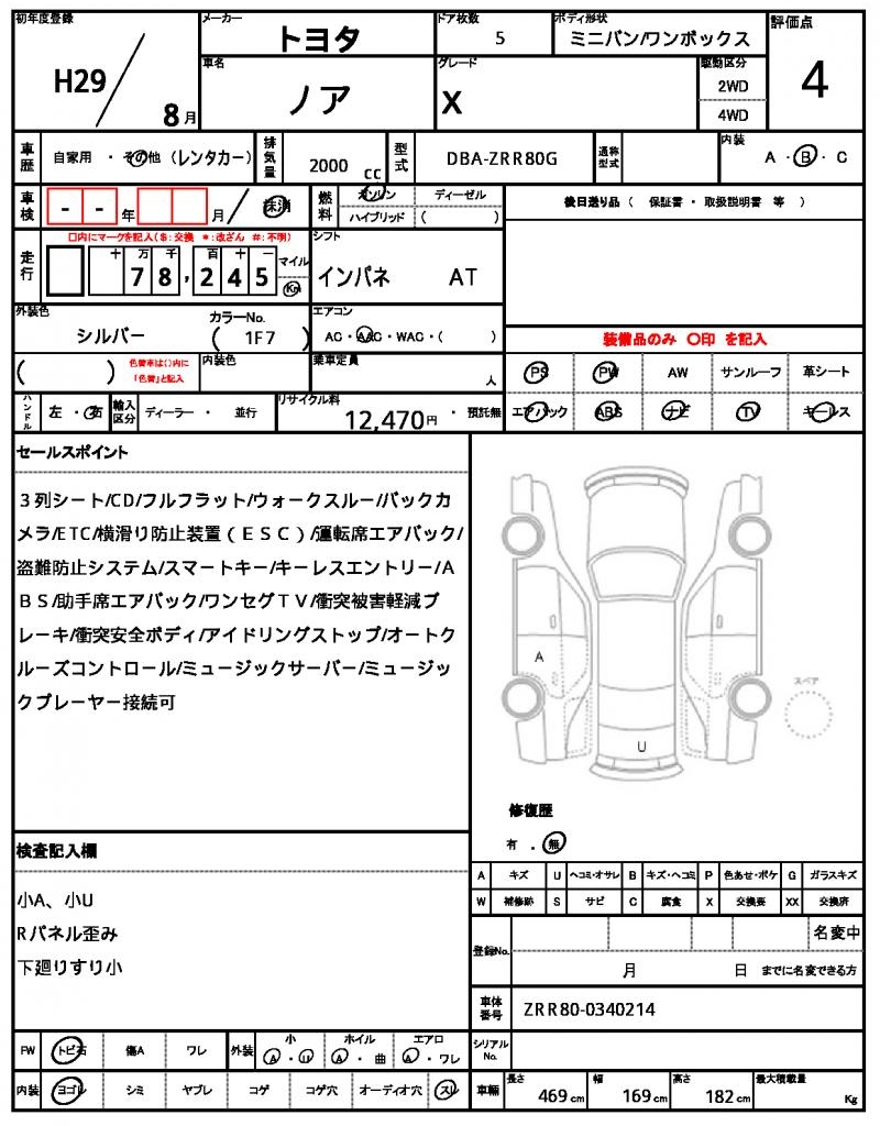 | TOYOTA | NOAH | 2017 | 2000 cc | ||||||||||||||||